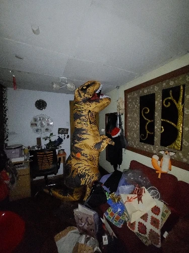 • Inflatable Design: Lightweight and durable materials allow easy inflation, giving a 3D appearance resembling a T Rex.