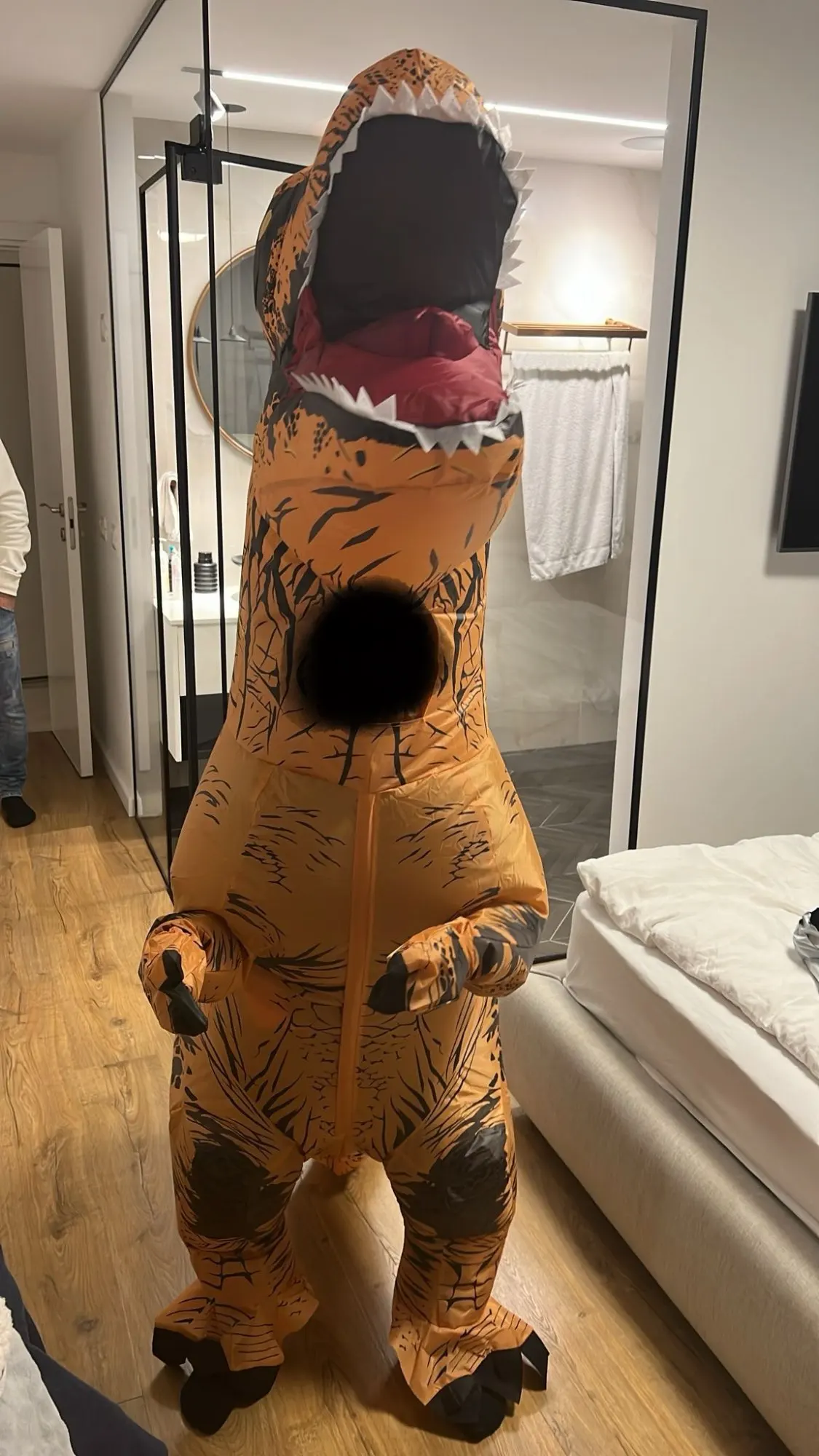 • Full-Body Coverage: Covers legs, arms, and torso for a realistic dinosaur look, with a see-through panel in the head for the wearer's face.